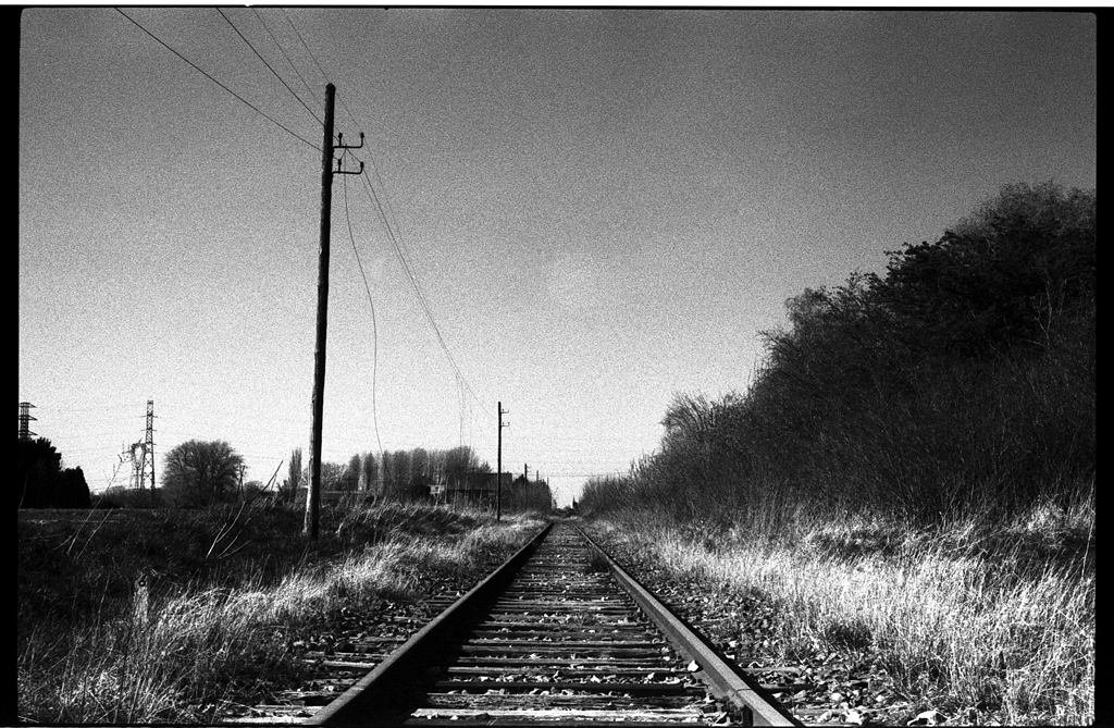 Quand je suis arrivé sur ce chemin qui borde la voie de chemin de fer, je me suis cru dans un vieux film. Le noir et blanc était tout à fait approprié.