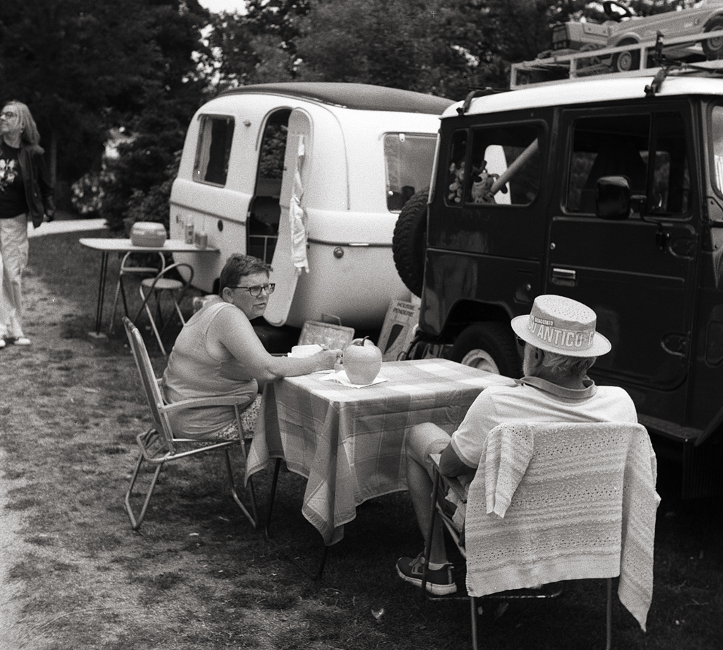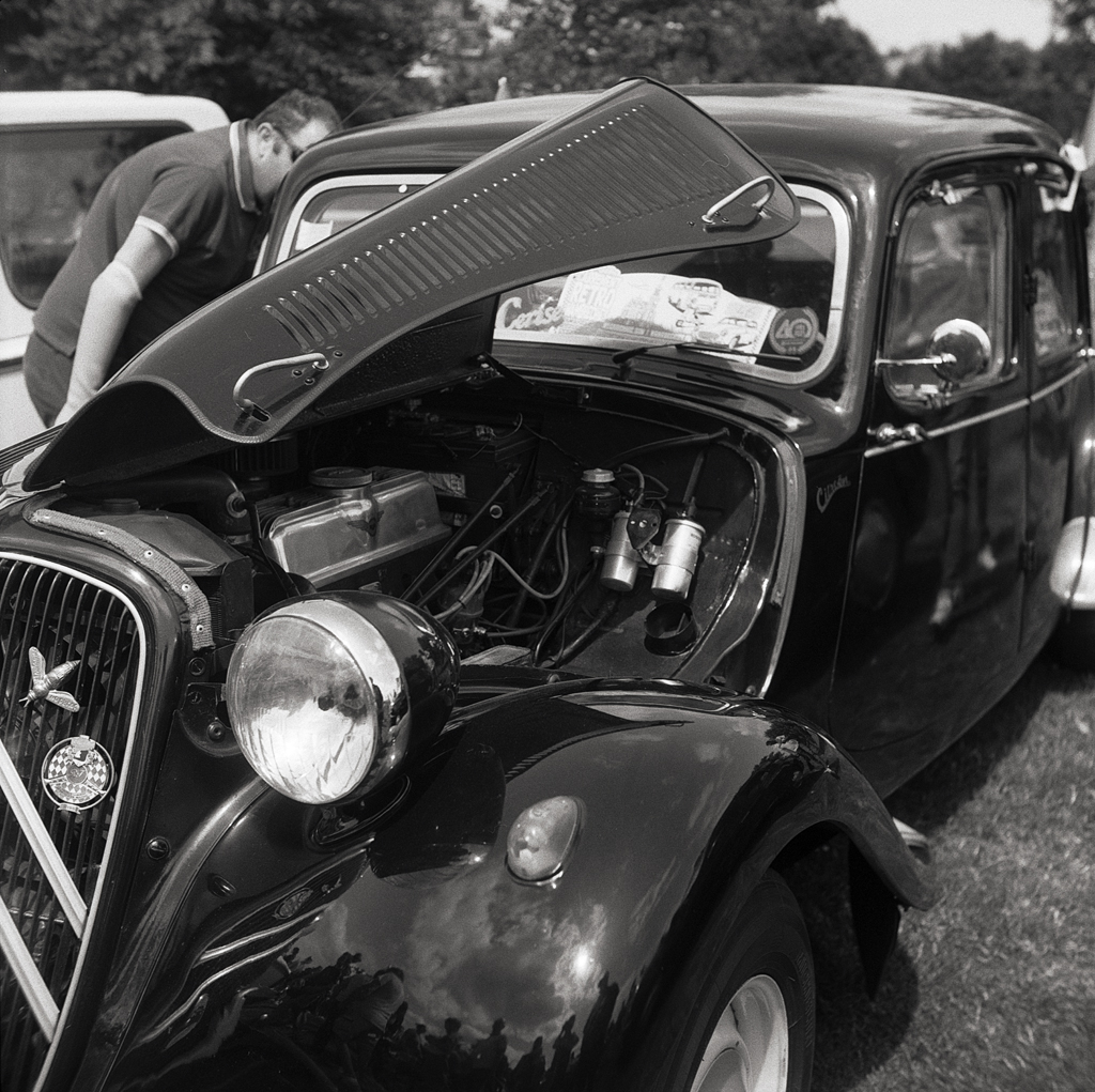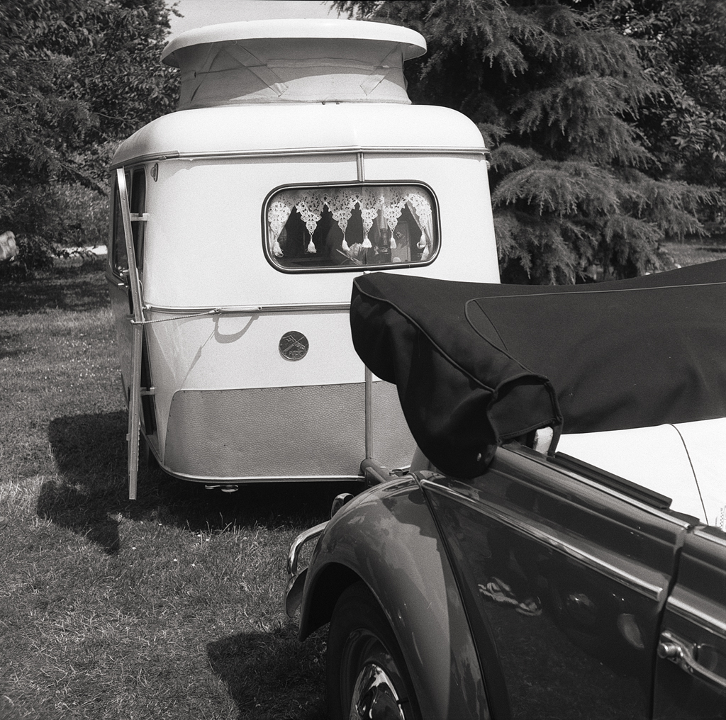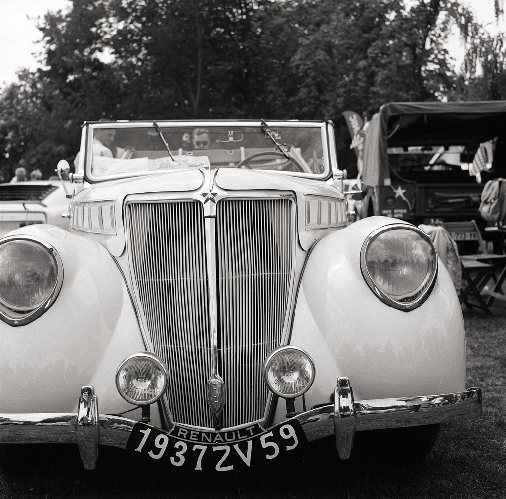 J’essaie de trouver du temps pour m’entraîner avec mes vieux boîtiers afin de ne pas perdre la main. Ce rassemblement de vieilles voitures était une très bonne occasion pour sortir le Rolleiflex et le Franka Solida III. J’adore le principe du reportage photo en quelques vues seulement. Il y a un côté paisible dans la prise de vue au Moyen Format argentique qui me plaît beaucoup. Je travaille à mon rythme et je décide seul des photos à prendre. Cela me change des mariages où je suis constamment sollicité. Ce serait intéressant d’expérimenter un reportage photo mariage avec comme unique équipement photographique le Moyen Format argentique. Les moments seraient forcément choisis avec prudence et le nombre d’images défini d’avance.