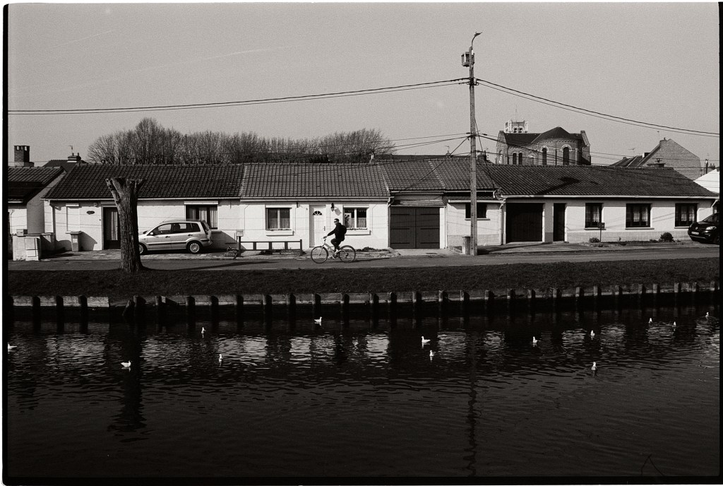 Découvrez deux clichés en noir et blanc, entre canal de la Deûle et côte d’Opale, capturant les contrastes des Hauts-de-France en photographie argentique.