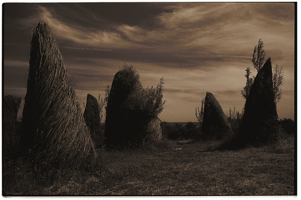 Photographie argentique d’une sculpture de Jean-Louis Muller au Mont Kemmel : un hommage visuel à nos ancêtres, capté sur pellicule dans un style ancien et intemporel.