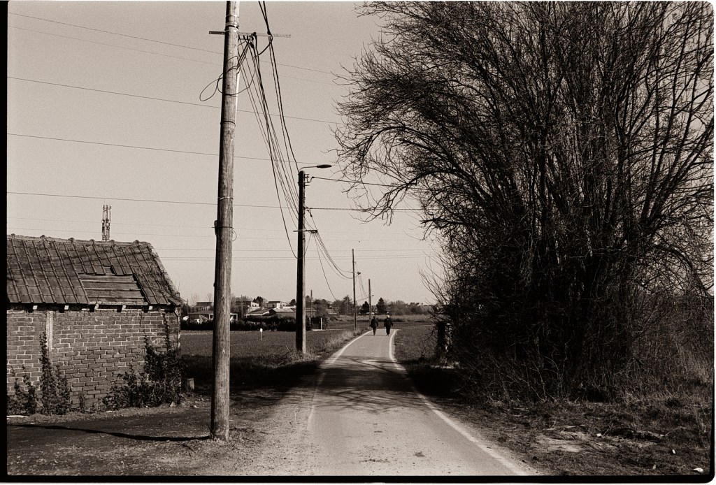 À la lisière de deux pays, la pellicule capte l’indicible. Une frontière invisible, révélée en noir et blanc par la Fomapan 100 et le regard du photographe.